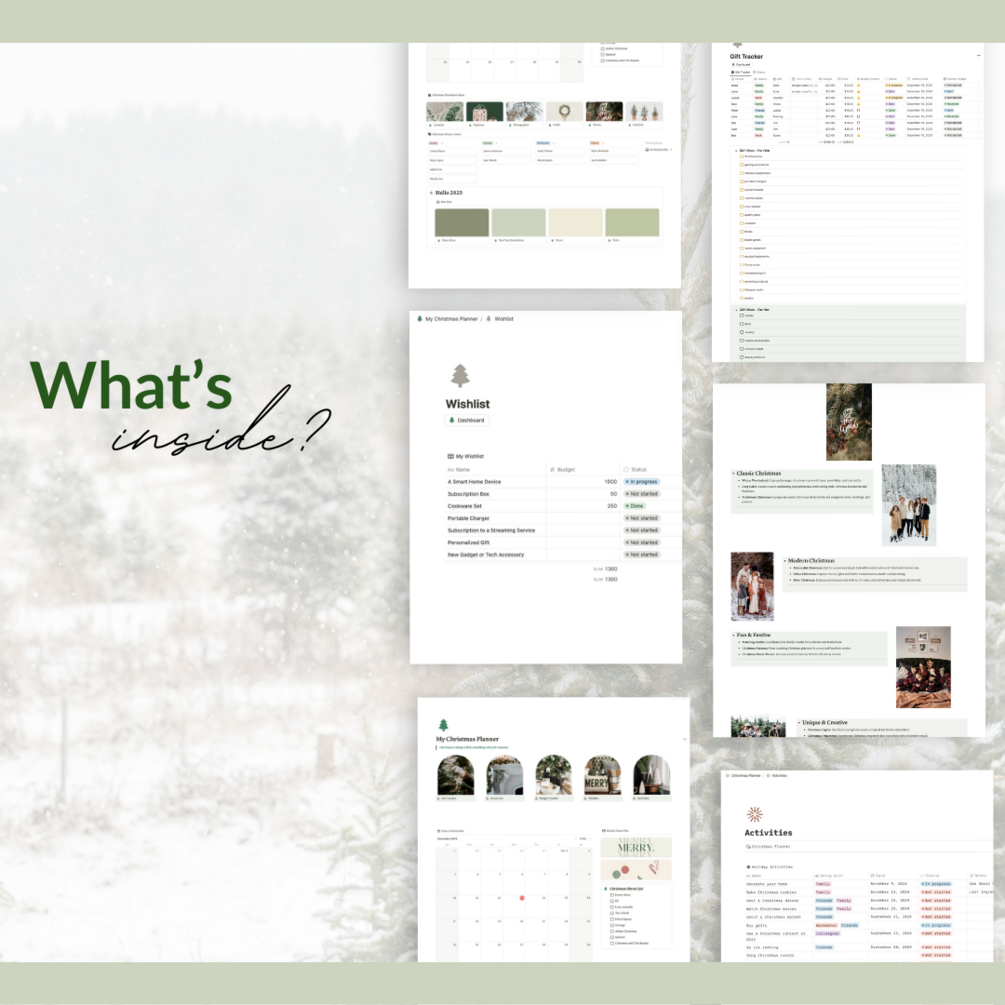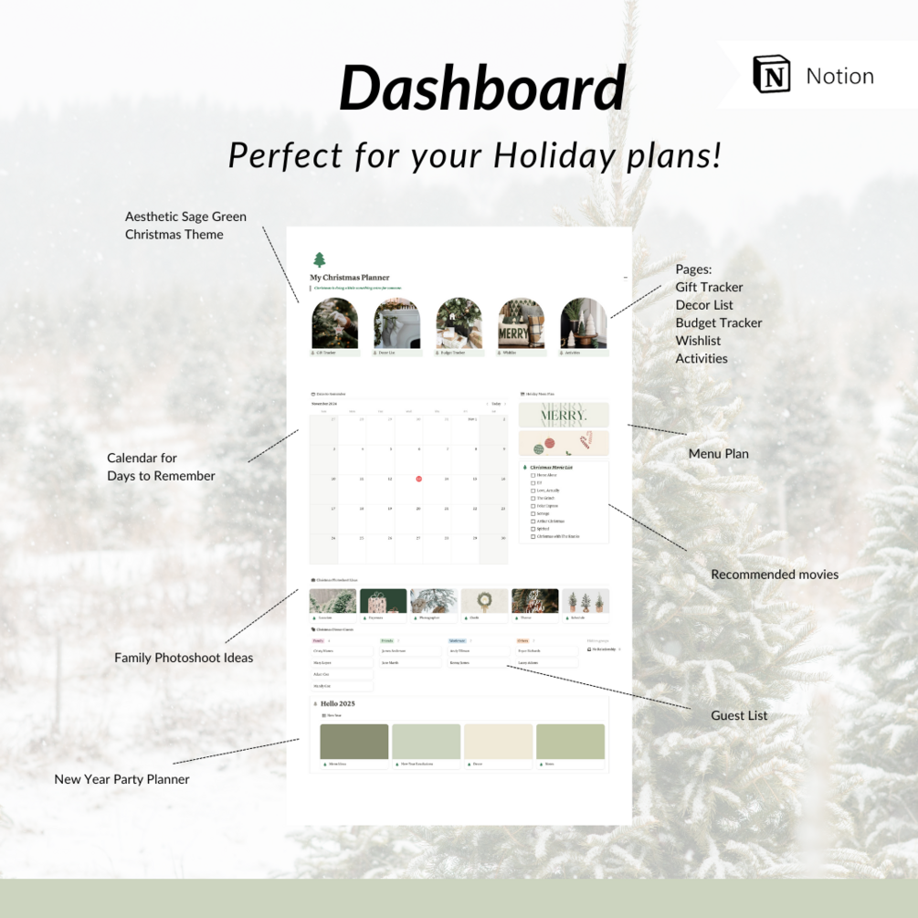 Christmas Planner Notion Template - Sage Green | New Year Planner
