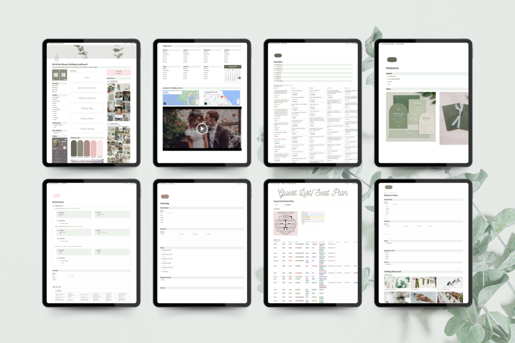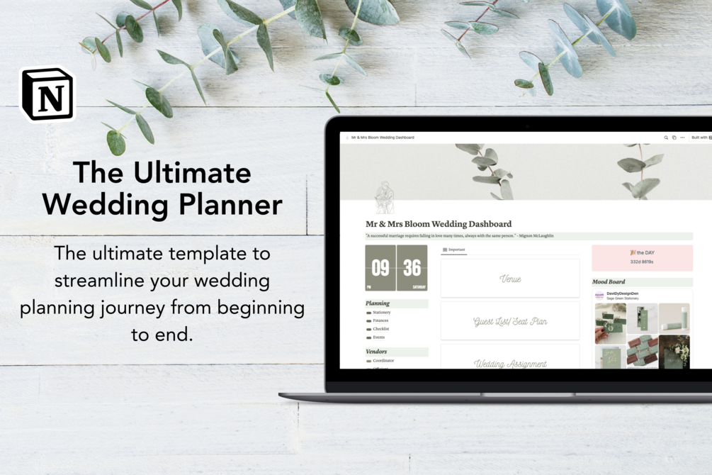 Ultimate Notion Wedding Planner Sage Green Theme