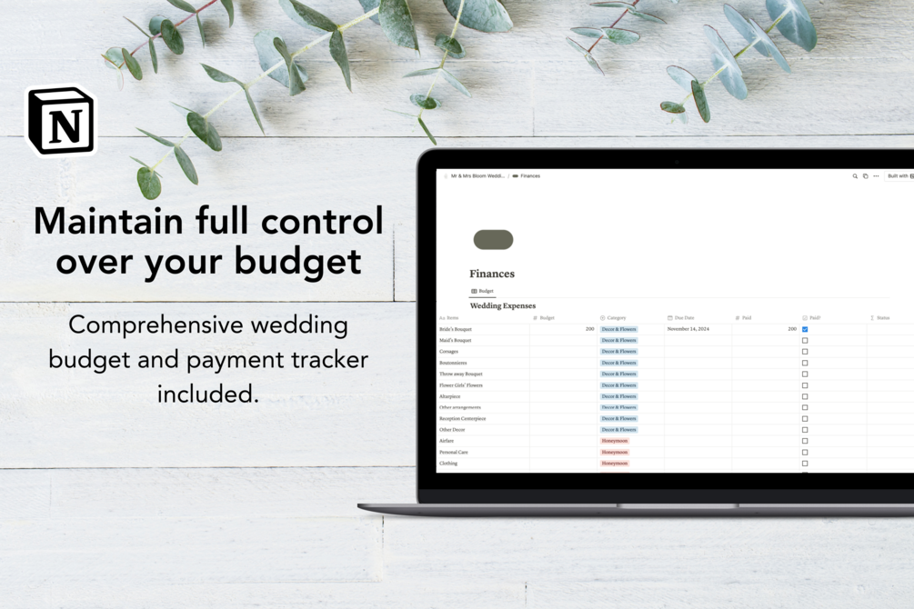 - Wedding budget & expenses tracker